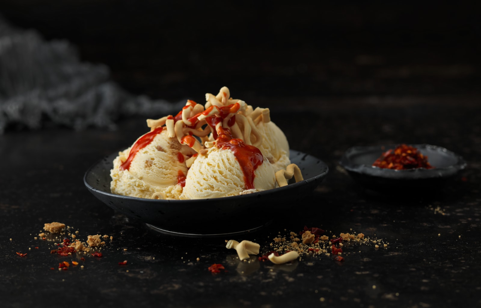 Gingernut Ice Cream paired with Sriracha and Crispy Noodles